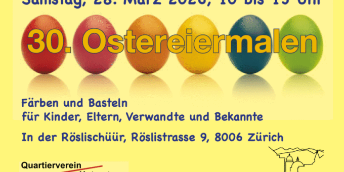 Ostereiermalen: Samstag, 28. März 2026, 10.00 bis 13.00 Uhr Färben und Basteln für Kinder, Eltern, Verwandte und Bekannte....