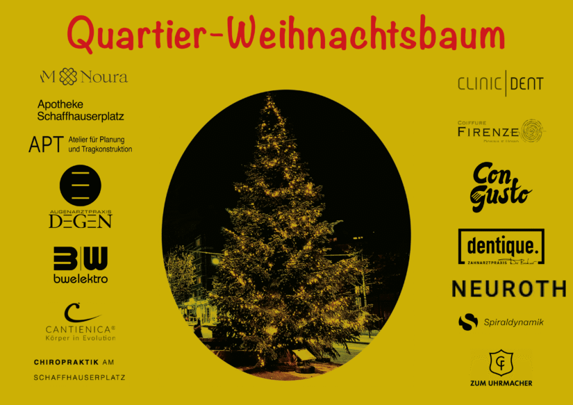 Mit dem Quartier-Weihnachtsbaum am Schaffhauserplatz möchten wir Licht und etwas Grün in die dunklen Wintertage bringen, und wir würden uns freuen, wenn er auch Ihnen gefällt!