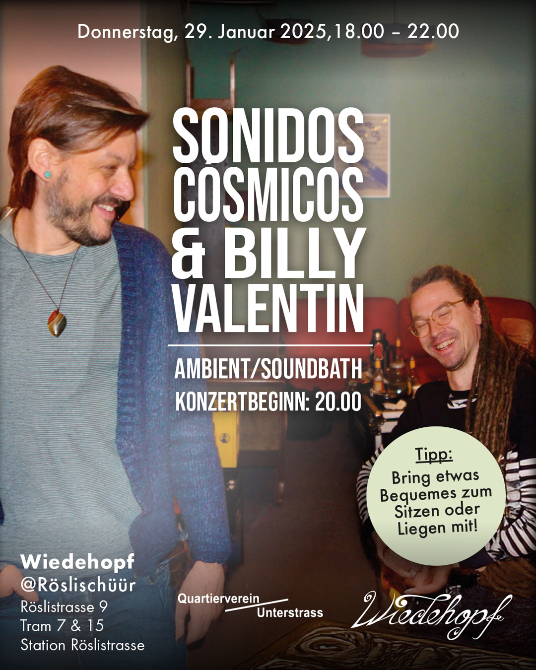 Donnerstag, 29. Januar 2026, 18–22 Uhr: Wiedehopf Sonidos Cósmicos & Billy Valentin
